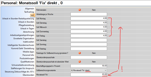 Im x7 werden die Sollstunden über die Parameter (Soll Montag, Soll Dienstag,....) hinterlegt.