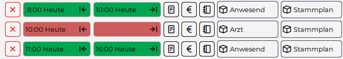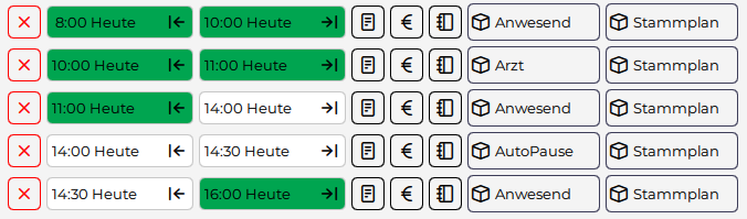 • Abwesenheitsstempelung (z.B. Arztbesuch) mit fehlender Ende/Beginn Buchung des Planungscodes