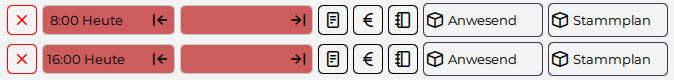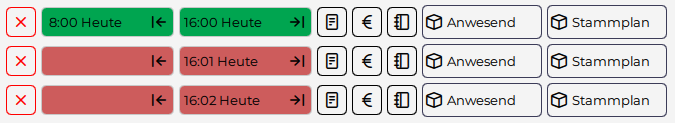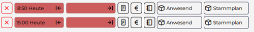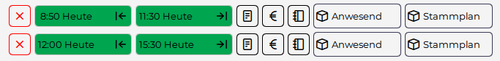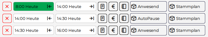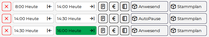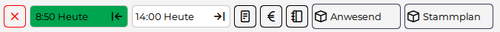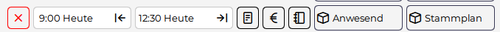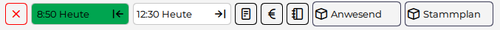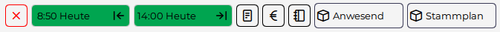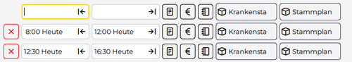 Wenn Mitarbeiter einzelne Kommt/Geht-Stempelungen vergessen, kann mittels dieses Buttons die fehlende Stempelung mit der geplanten Sollzeit des Dienstes ergänzt werden.