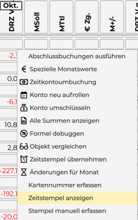 Mithilfe dieser Funktion kann man sich alle Stempelungen des Mitarbeiters des aktuellen Monats anzeigen lassen:
