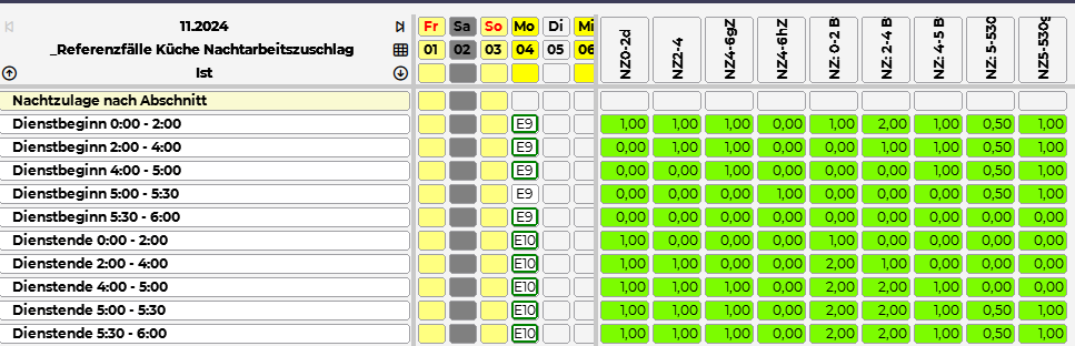 Zeitkontosammlung Nachtarbeitszuschlag 4-6 ganze Zulage |